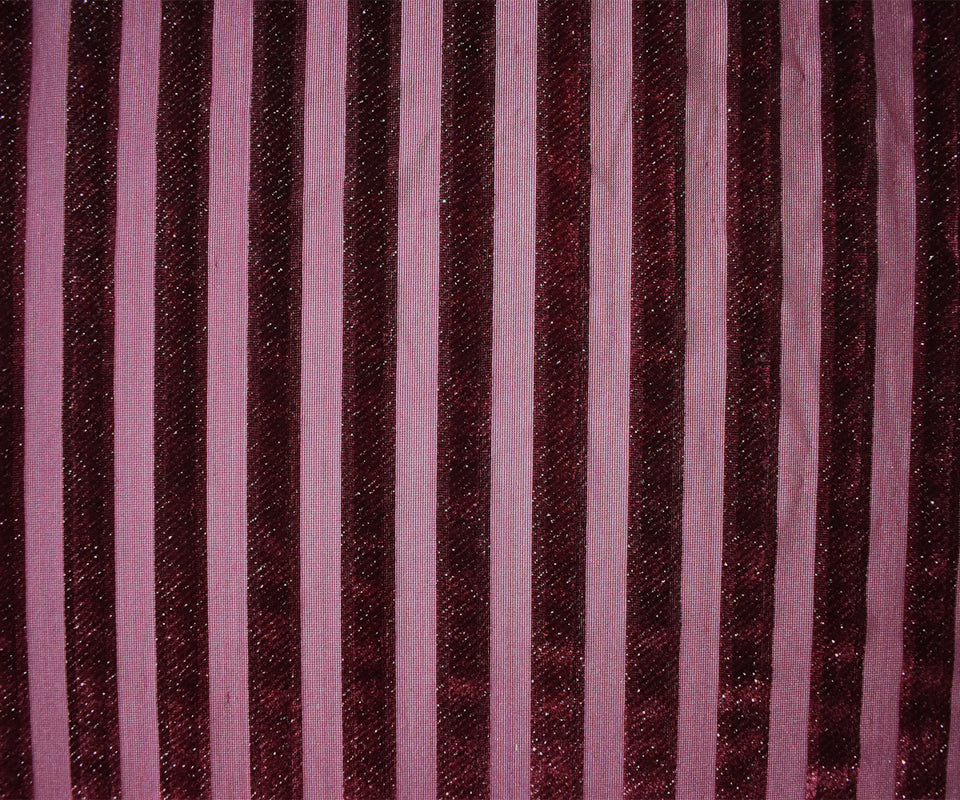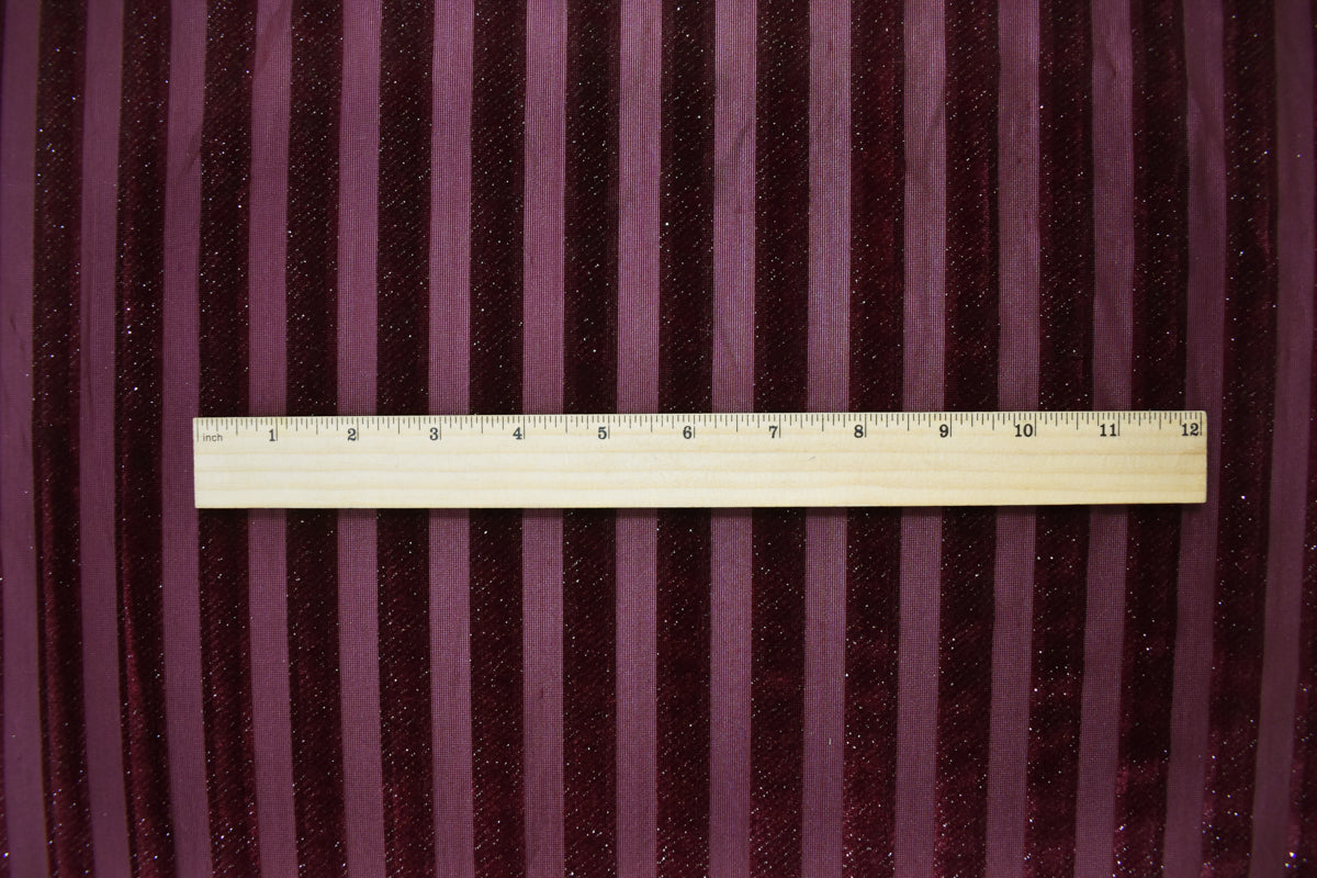 Red-Sliver Poly Burnout Stripe Stretch Velvet Mesh Knit Fabric