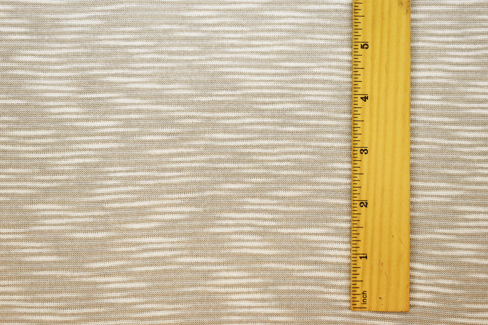 Beige-White Poly-Rayon Stripe Spandex Semi-Sheer Stripe Jersey Knit Fabric