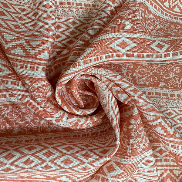 Coral and White Multi Stripe Print Rayon Challis Fabric