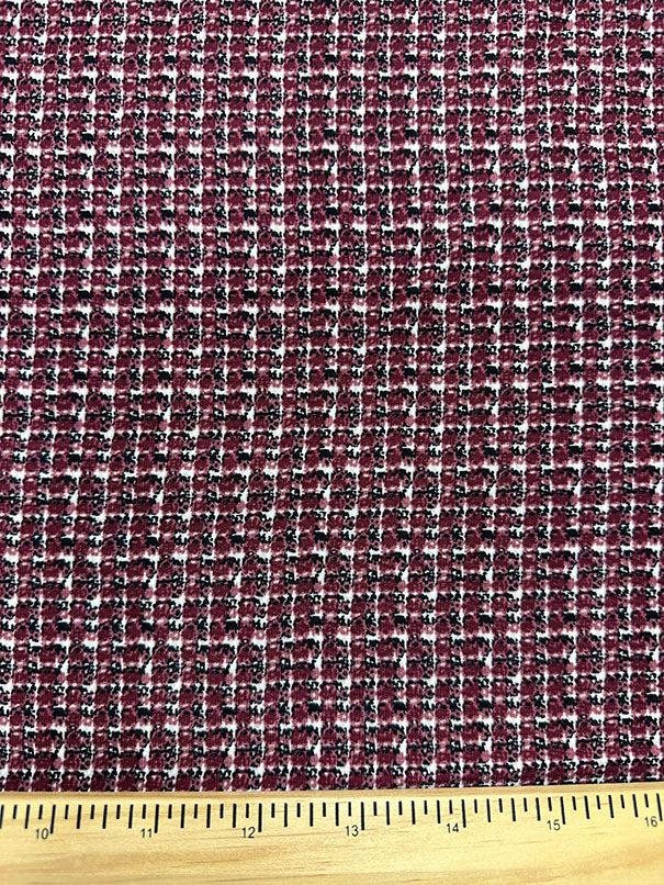 -Dark Red, Black, & White Print Poly Peachskin Fabric