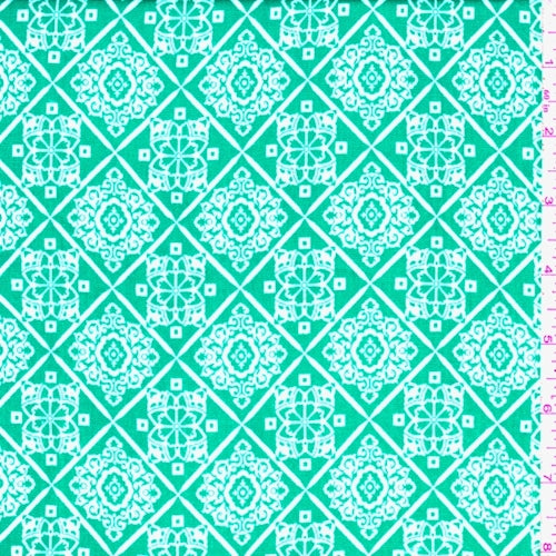 Aquamarine/White Medallion Diamond Rayon Crepe Fabric