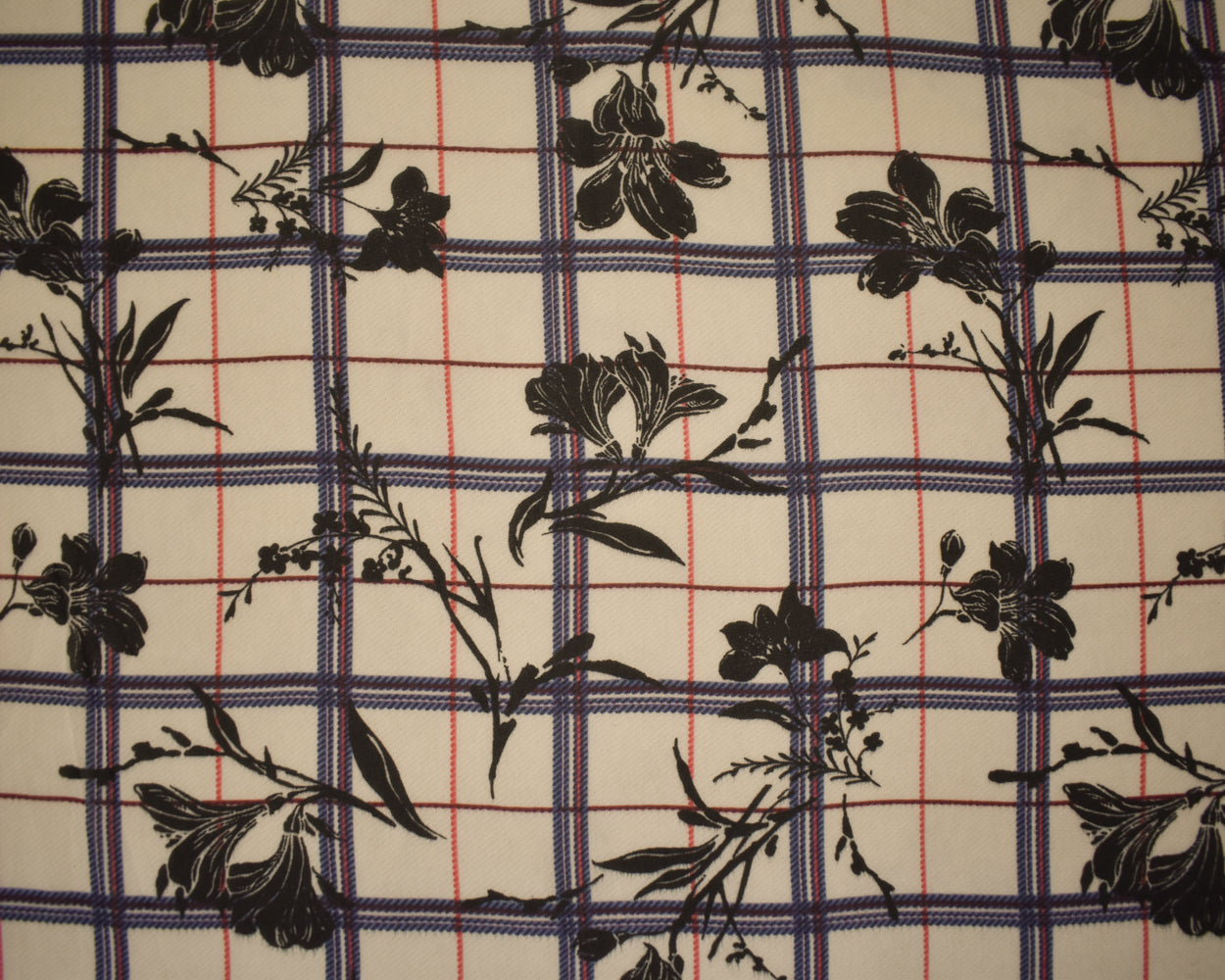 -Beige-Black-Multi Poly Plaid Floral Printed Chiffon Woven Fabric