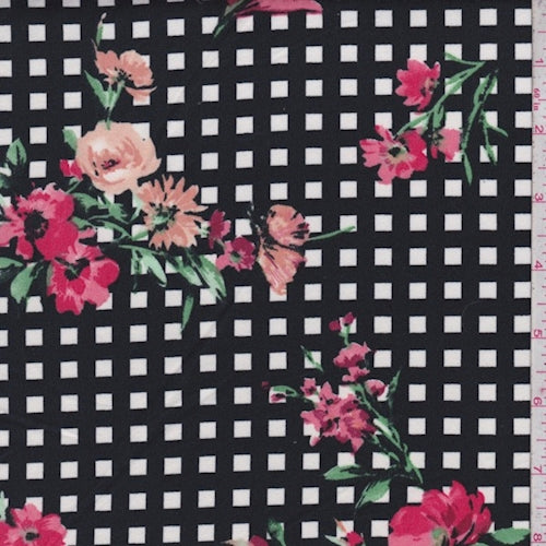 Black Floral Check Double Brushed Jersey Knit Fabric