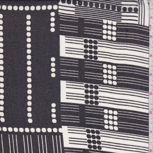 Black/White Dot/Stripe Block Crepe Georgette Fabric