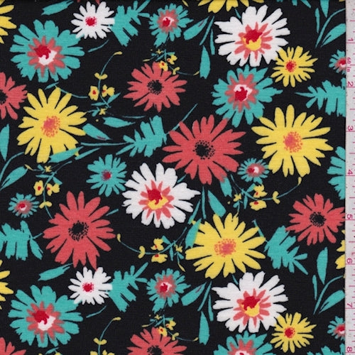 Black/Yellow/Aqua Tossed Daisy Jersey Knit Fabric