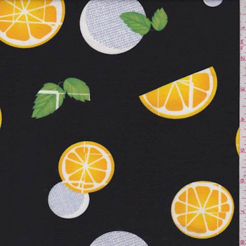 Black/Yellow Citrus Double Brushed Jersey Knit Fabric