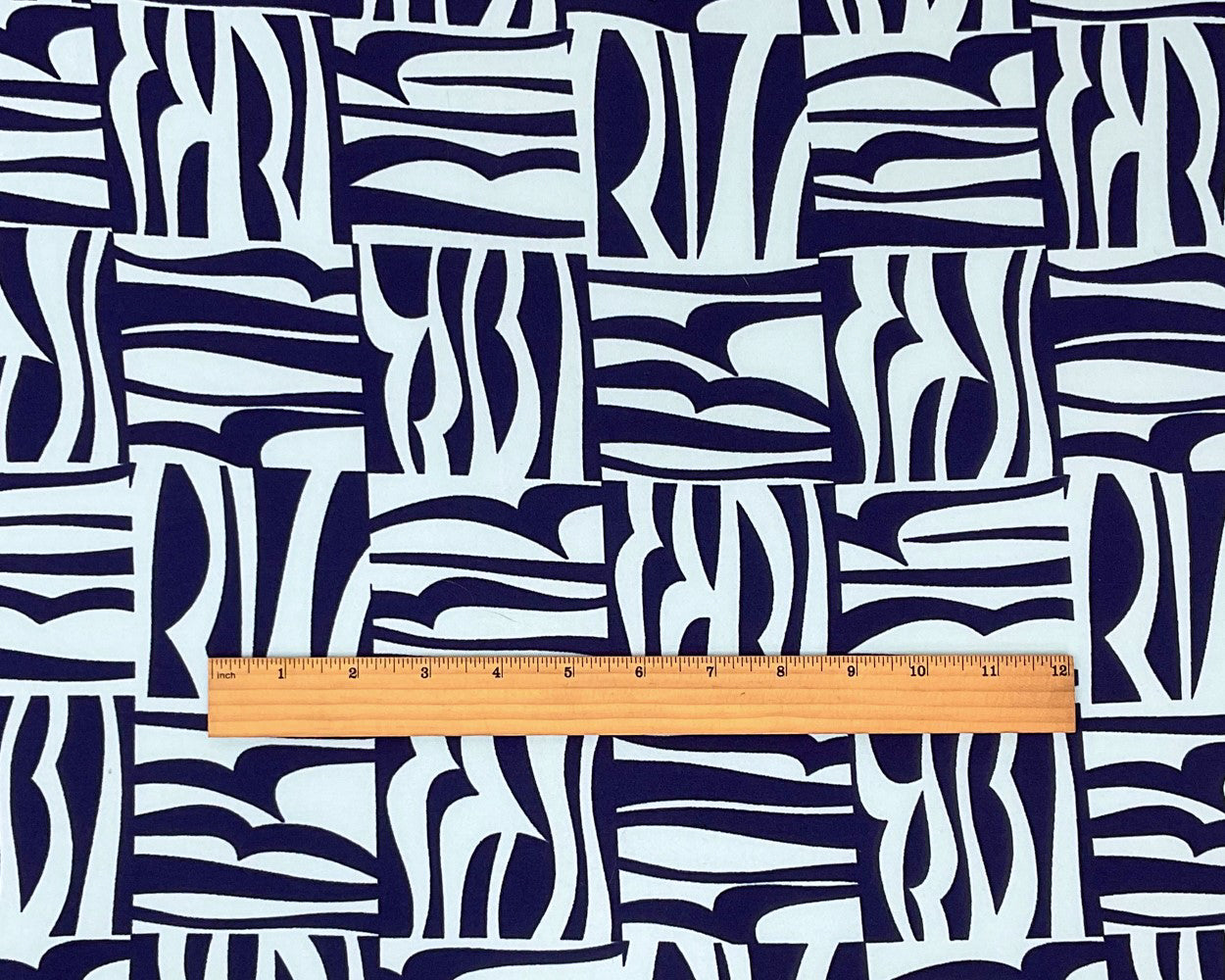 Blue-Navy Poly Stretch Spandex Abstract Print DB Jersey Knit Fabric