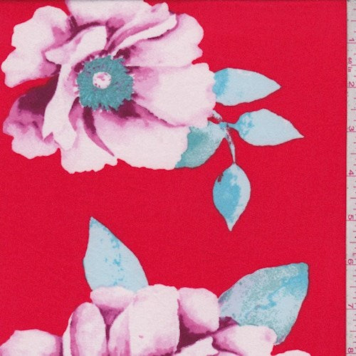 Bright Red Large Floral Double Brushed Jersey Knit Fabric