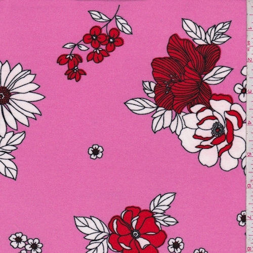 Bubblegum Pink/Red Floral Double Brushed Jersey Knit Fabric