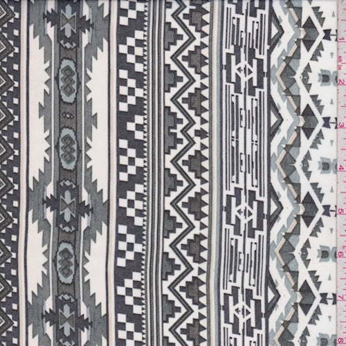 Cloud/Moss/Black Aztec Stripe Georgette Fabric