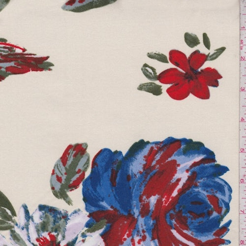 Creamy Yellow Large Floral Double Brushed Jersey Knit Fabric