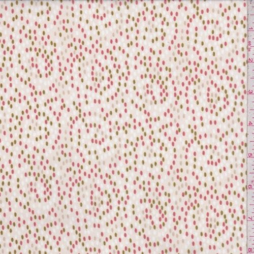 Ecru/Rose/Olive Dotted Scroll Chiffon Fabric