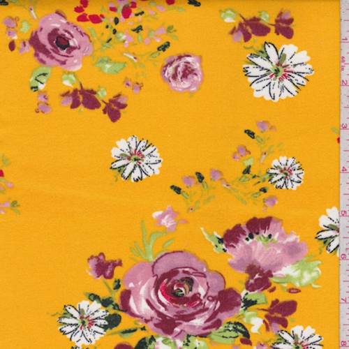 Goldenrod/Pink Floral/Daisy Double Brushed Jersey Knit Fabric