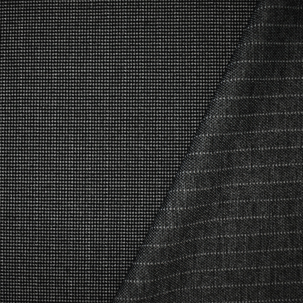 Gray-Black Poly Wool Spandex Stretch Stripe Double Sided Double Knit Fabric