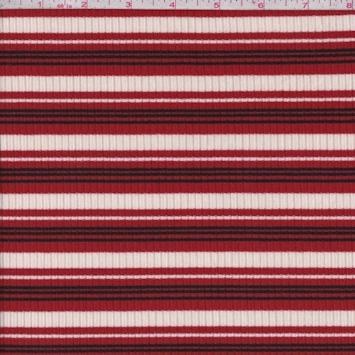 Ivory/Brick/Black Stripe Poor Boy Rib Knit Fabric