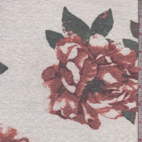 Ivory/Copper Floral Bloom Slub Jersey Knit Fabric