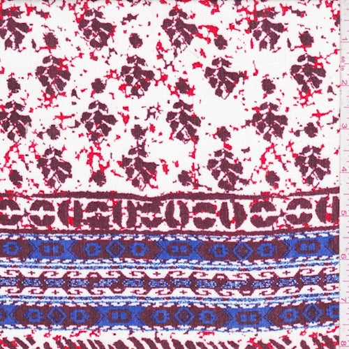 Ivory/Electric Blue/Burgundy Deco Stripe Crepon Fabric