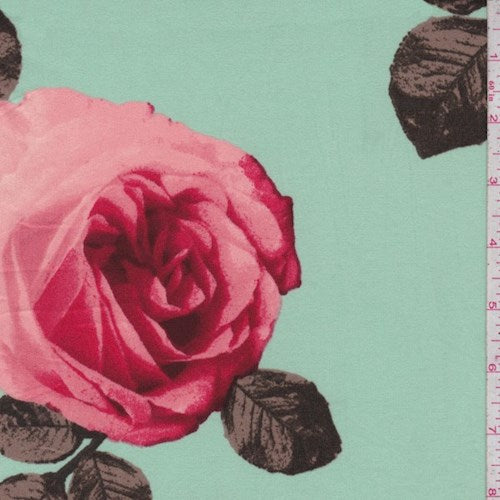 Mint Green/Orange Rose Double Brushed Jersey Knit Fabric