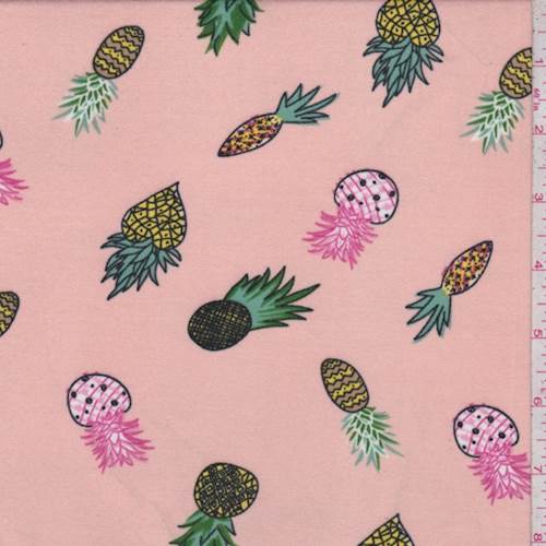 Pale Peach Deco Pineapple Double Brushed Jersey Knit Fabric