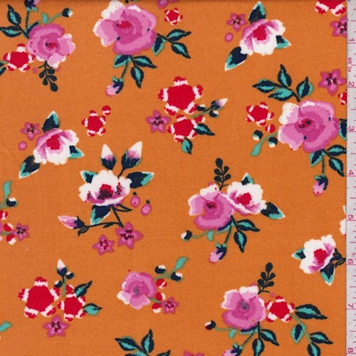 Pumpkin Vibrant Floral Double Brushed Jersey Knit Fabric