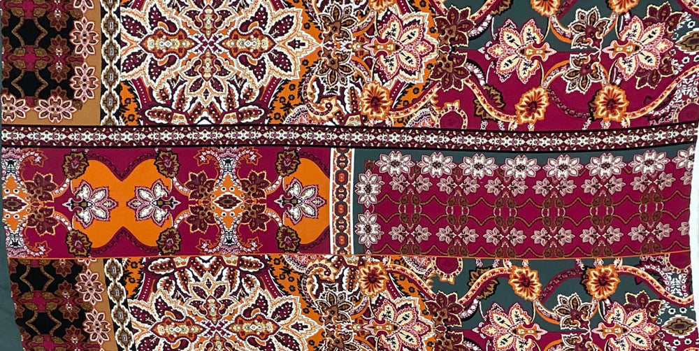 Red-Black-Multi Poly Floral Border Printed Momie Georgette Woven Fabric