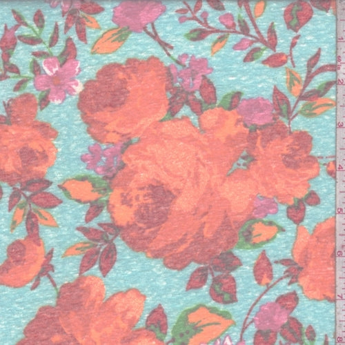Sea Green Floral Slub Jersey Knit Fabric