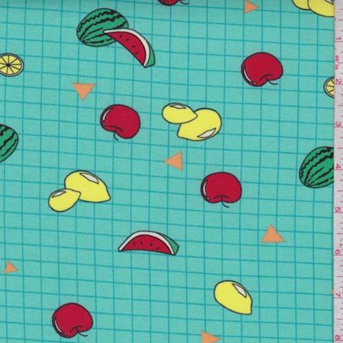 Seafoam Blue Grid/Fruit Double Brushed Jersey Knit Fabric