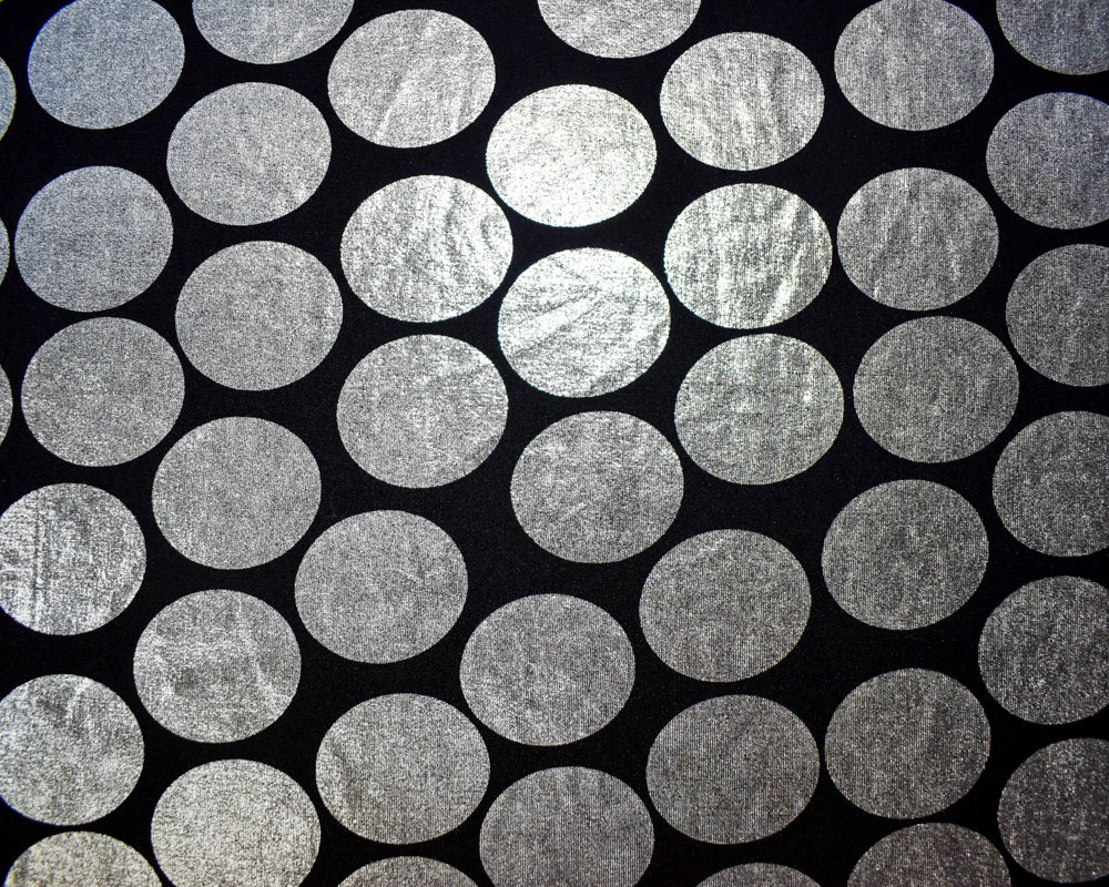-Silver-Black Poly Blend Spandex Foil Dot Printed Slinky Knit Fabric