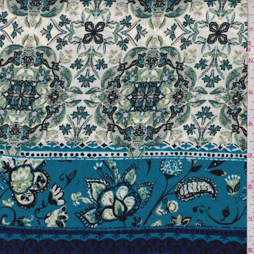Teal Blue/Jade Stylized Stripe Crepe Fabric