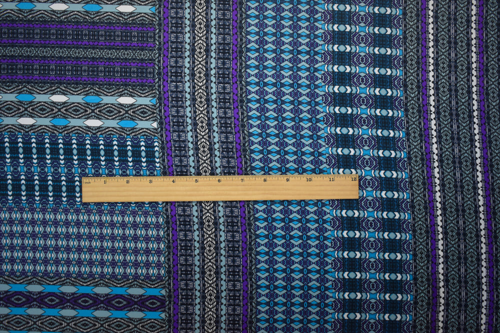 Turquoise-Purple-Multi Poly Aztec Border Printed Charmeuse Woven Fabric