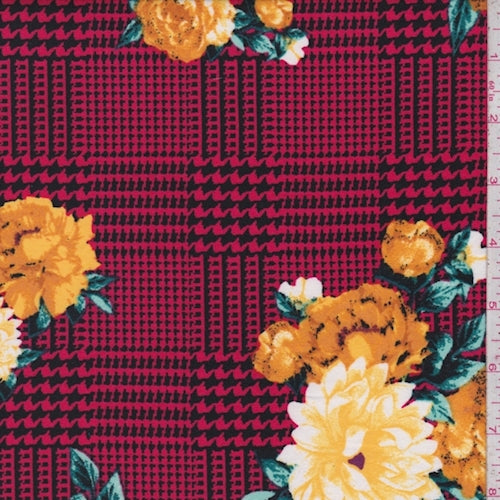Watermelon/Gold Glen Plaid Floral Double Brushed Jersey Knit Fabric