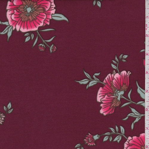 Wine/Raspberry Cosmo Floral Double Brushed Jersey Knit Fabric