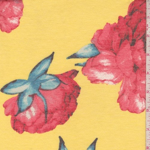 Yellow/Coral Peony Double Brushed French Terry Knit Fabric