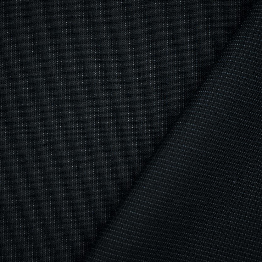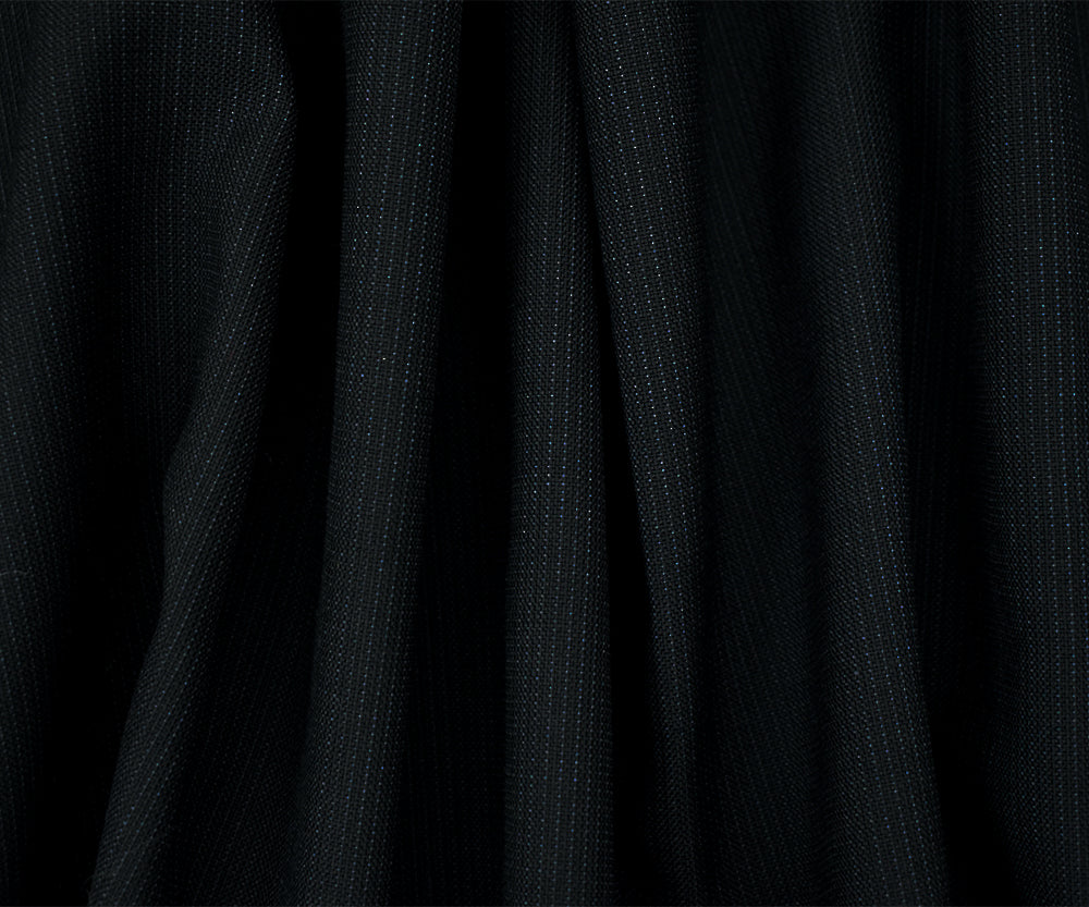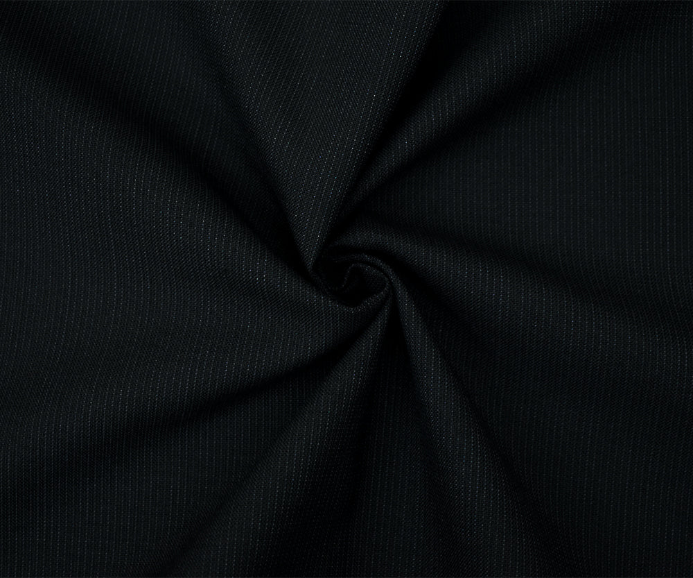 Black-Midnight Blue Wool Polyester Striped Dobby Suiting Woven Fabric