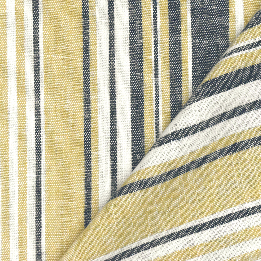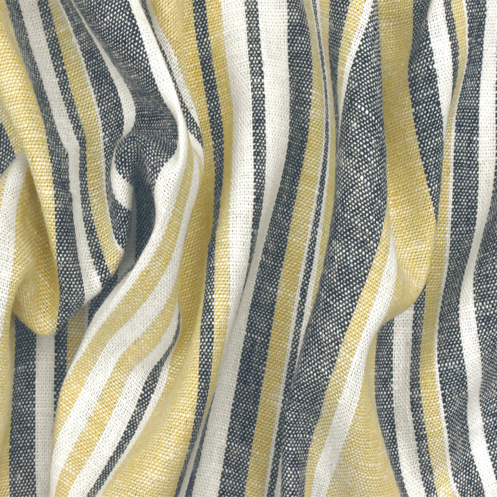 Dijon Yellow-Blue-White Striped Linen Cotton Shirting Woven Fabric