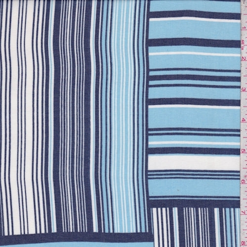 Navy/Blue/White Stripe Block Chiffon Fabric