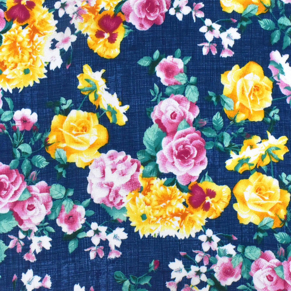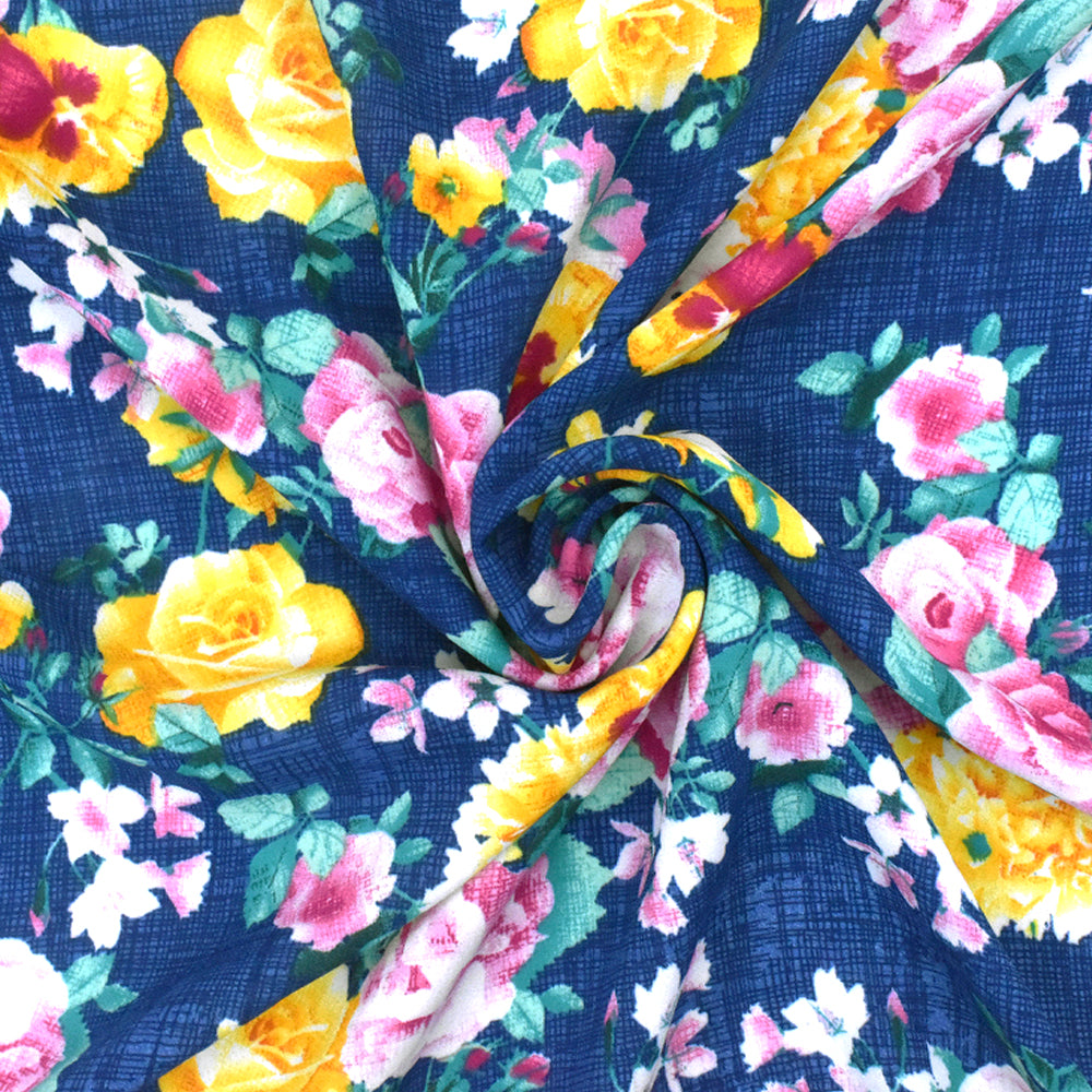 Nile Blue-Yellow-Multi Floral Printed Polyester Georgette Woven Fabric