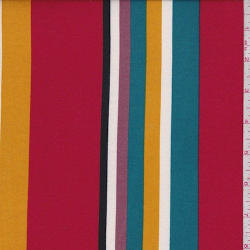 Teal/Black/Berry Stripe Double Brushed Jersey Knit Fabric