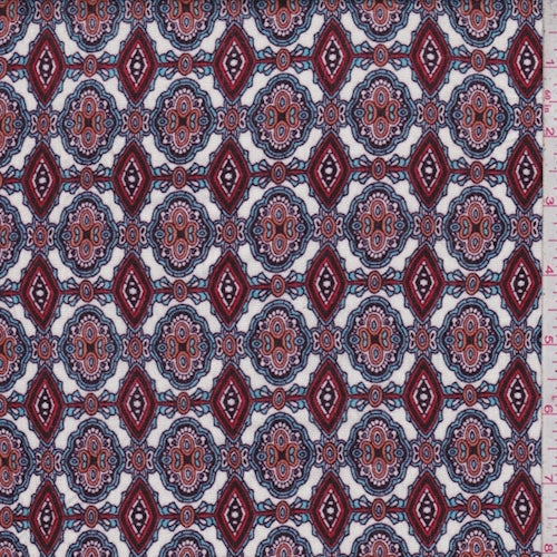 White/Cloud Geo Medallion Crinkled Gauze Fabric
