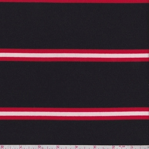 Black/Red/White Stripe Double Brushed French Terry Knit Fabric