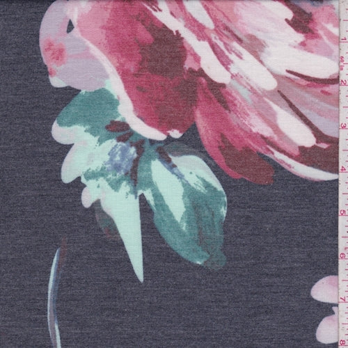 Heather Black Peony Pop Baby French Terry Knit Fabric