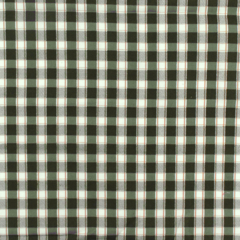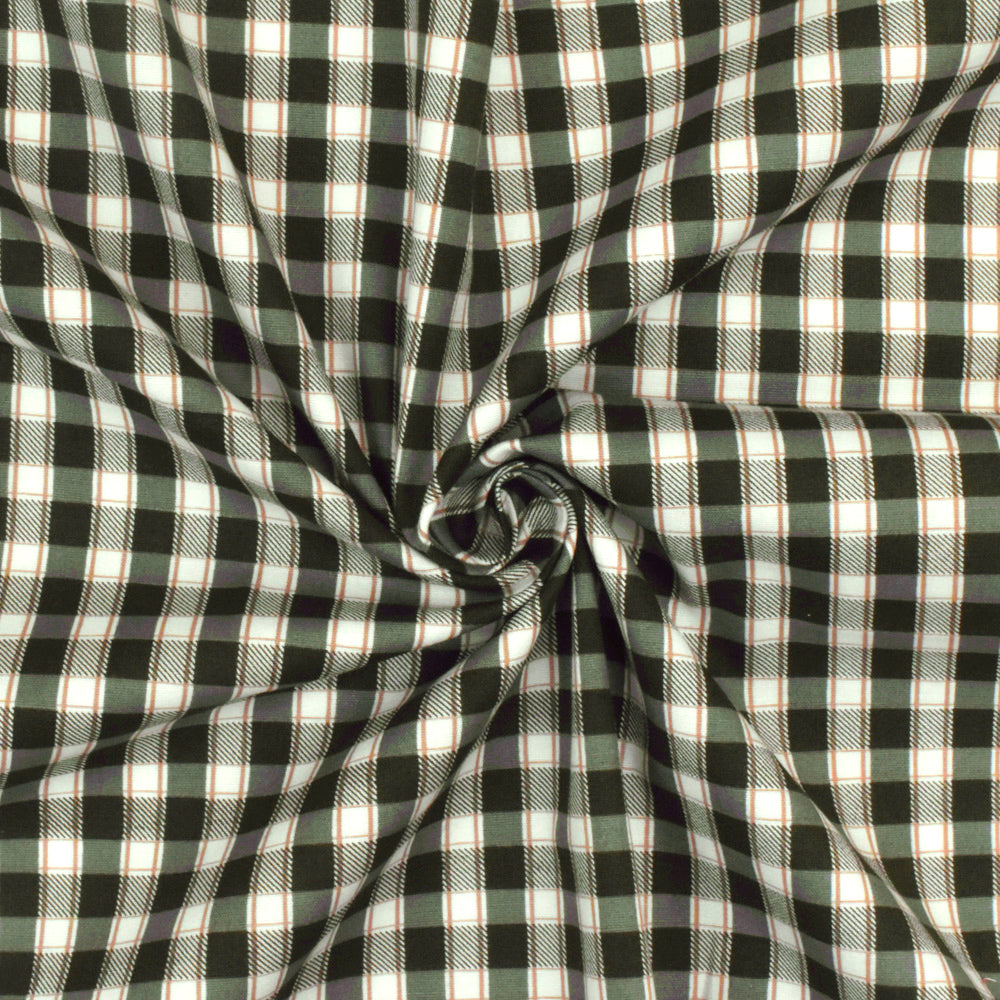Green-Gray-Multi Plaid Print Stretch Cotton Broadcloth Woven Fabric