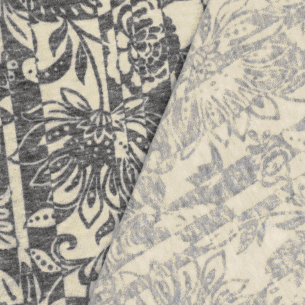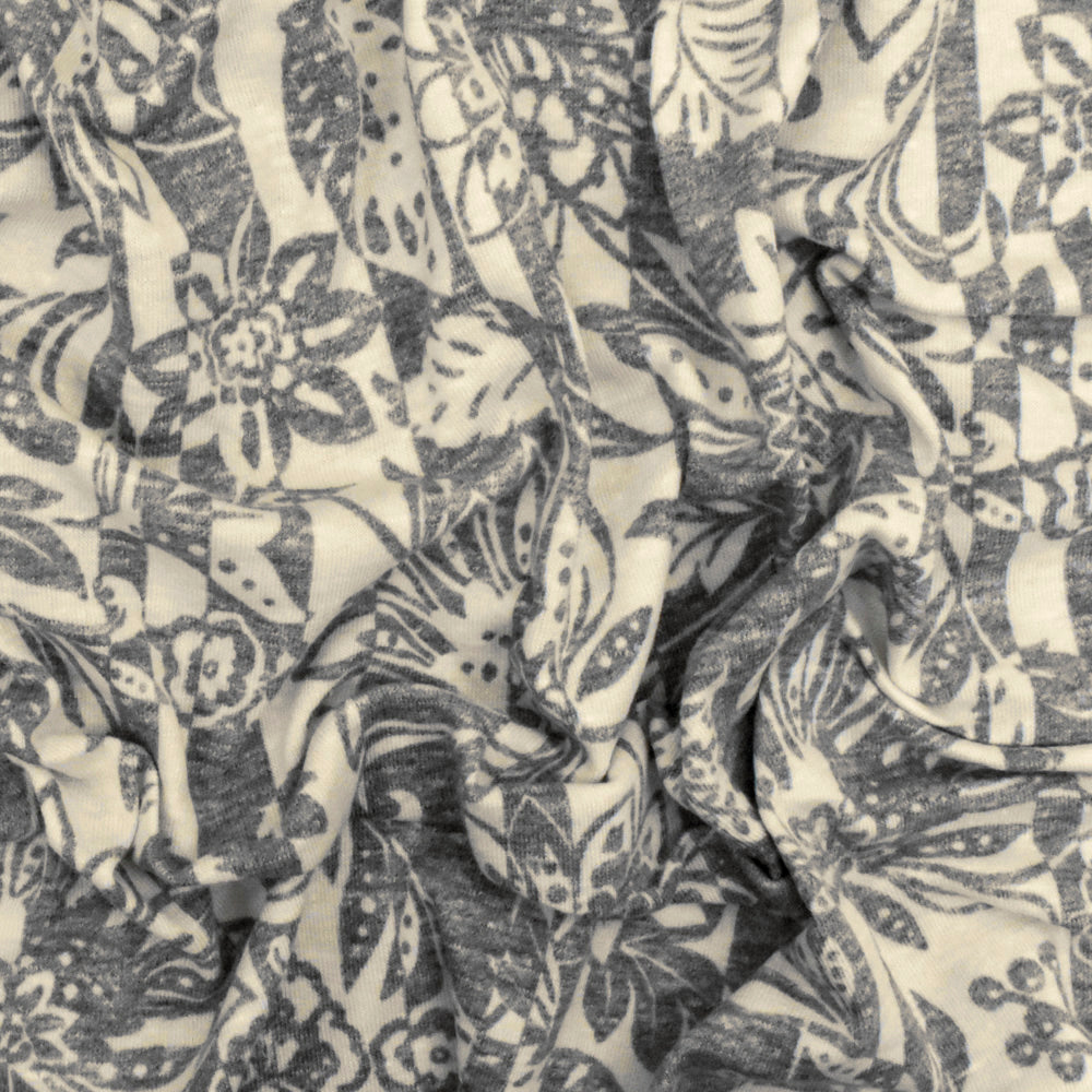 Heather Gray-Beige Floral Stripe Printed Stretch Jersey Knit Fabric