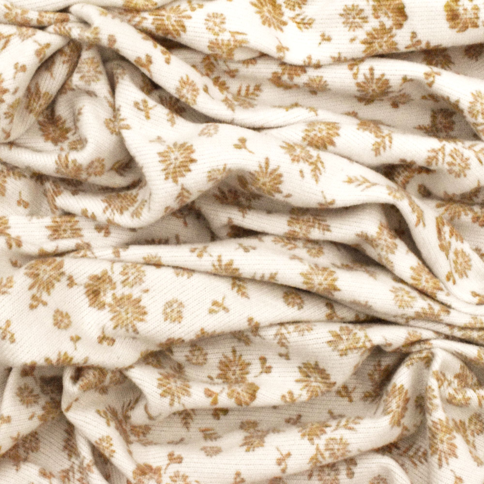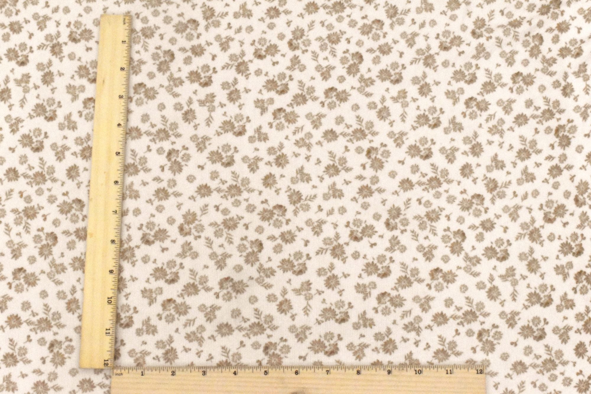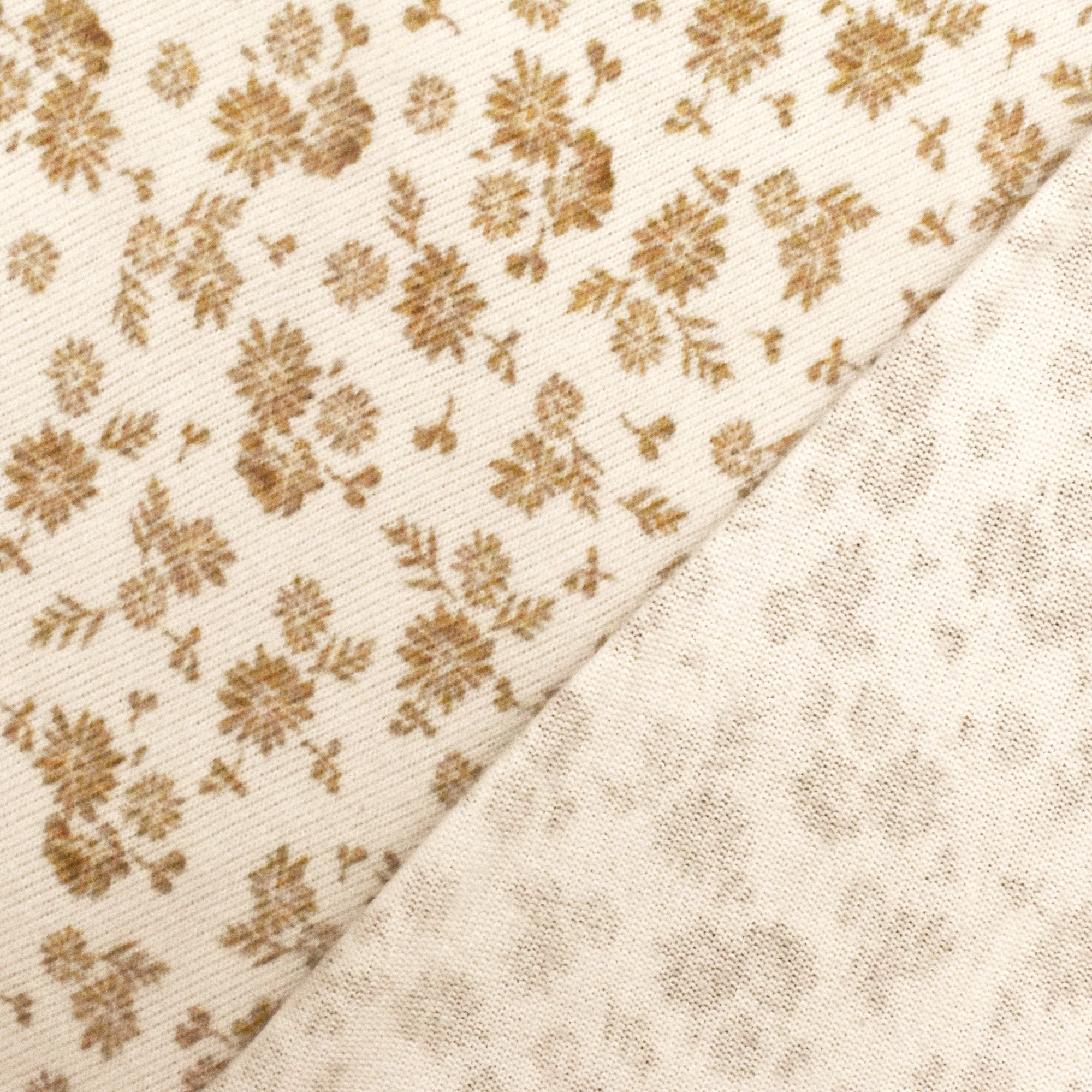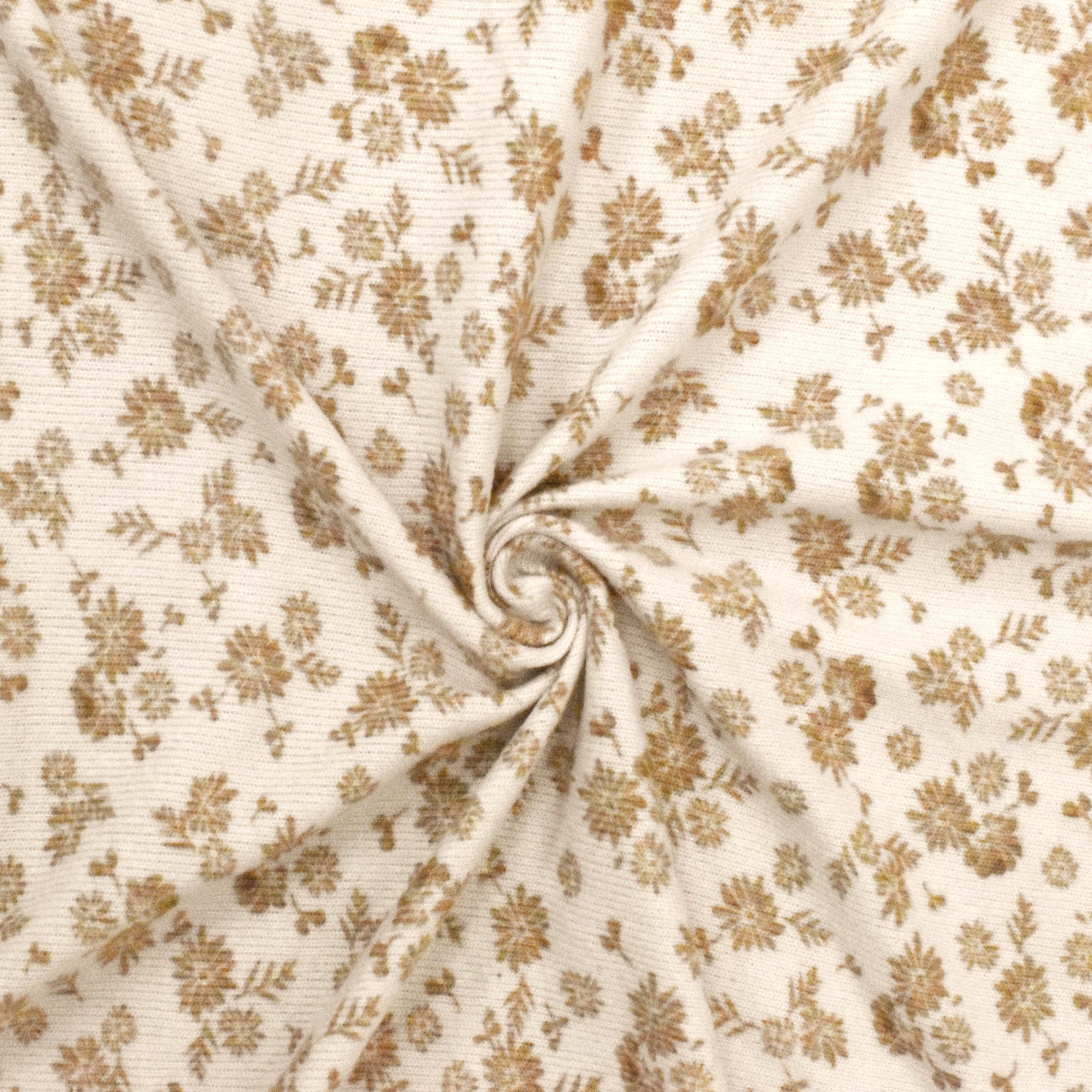 Ivory Beige-Brown Floral Print Double Brushed Jersey Knit Fabric