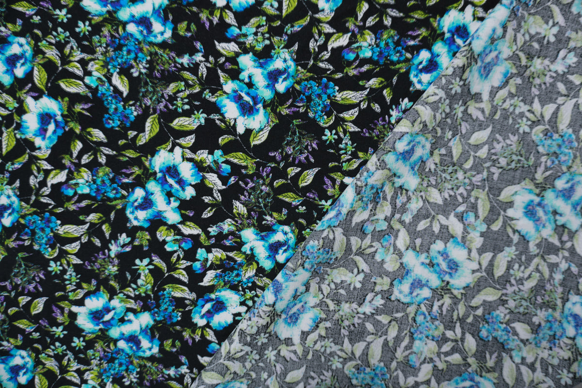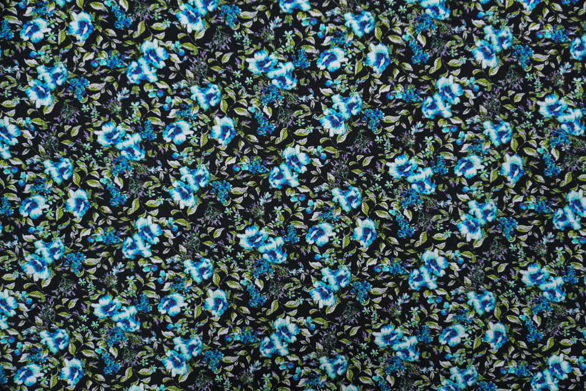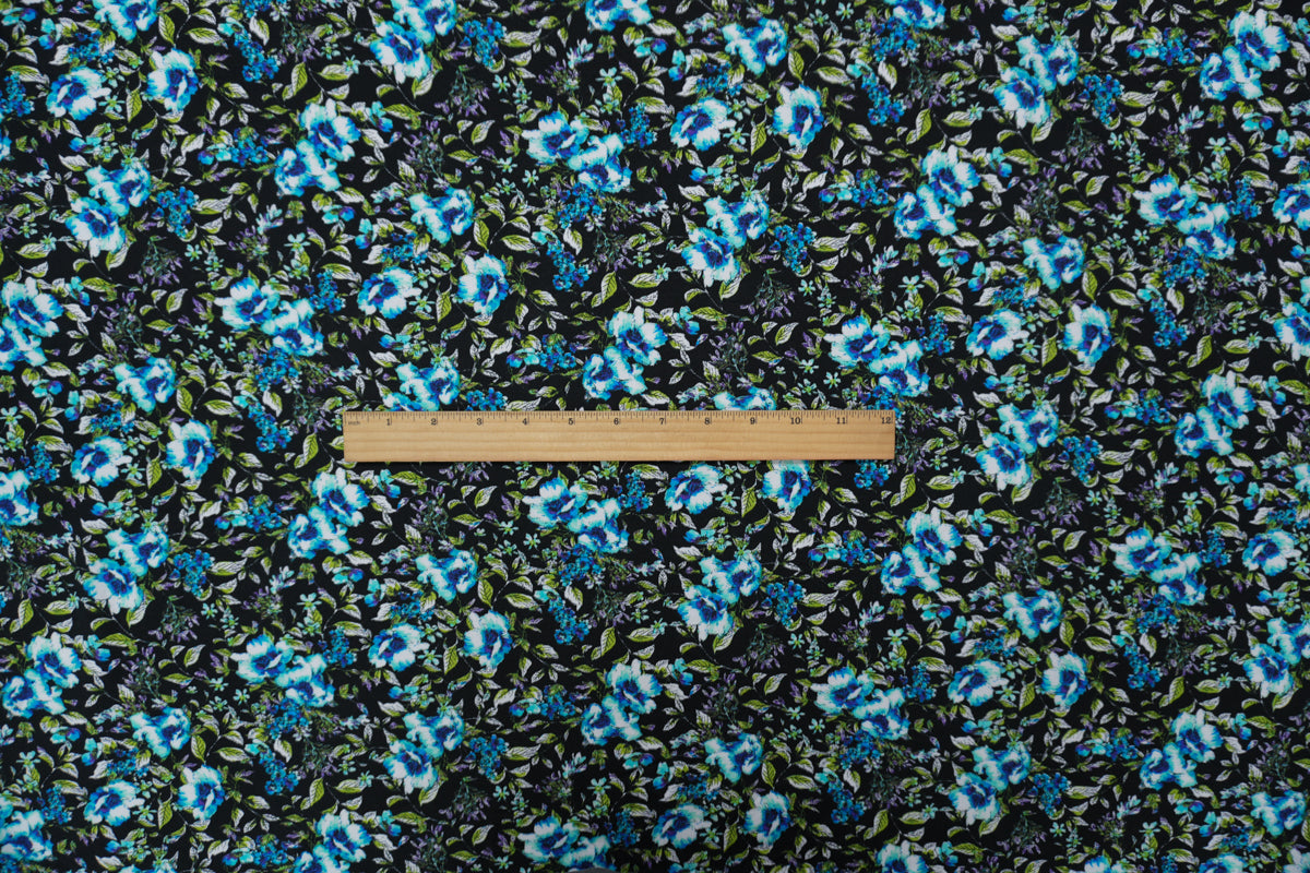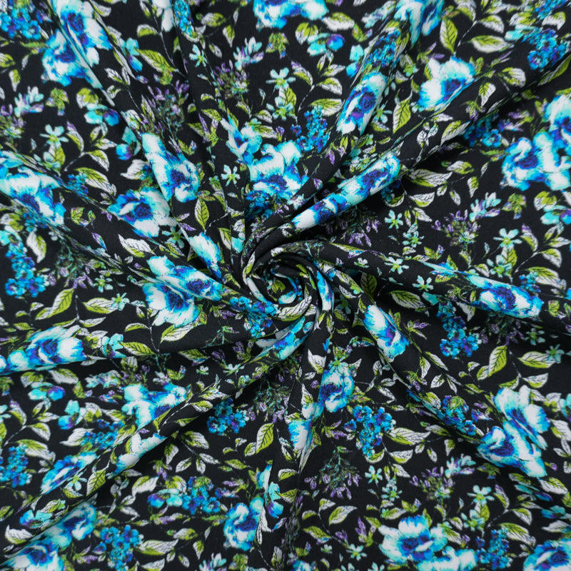 Black-Blue-Multi Rayon Floral Printed Challis Woven Fabric