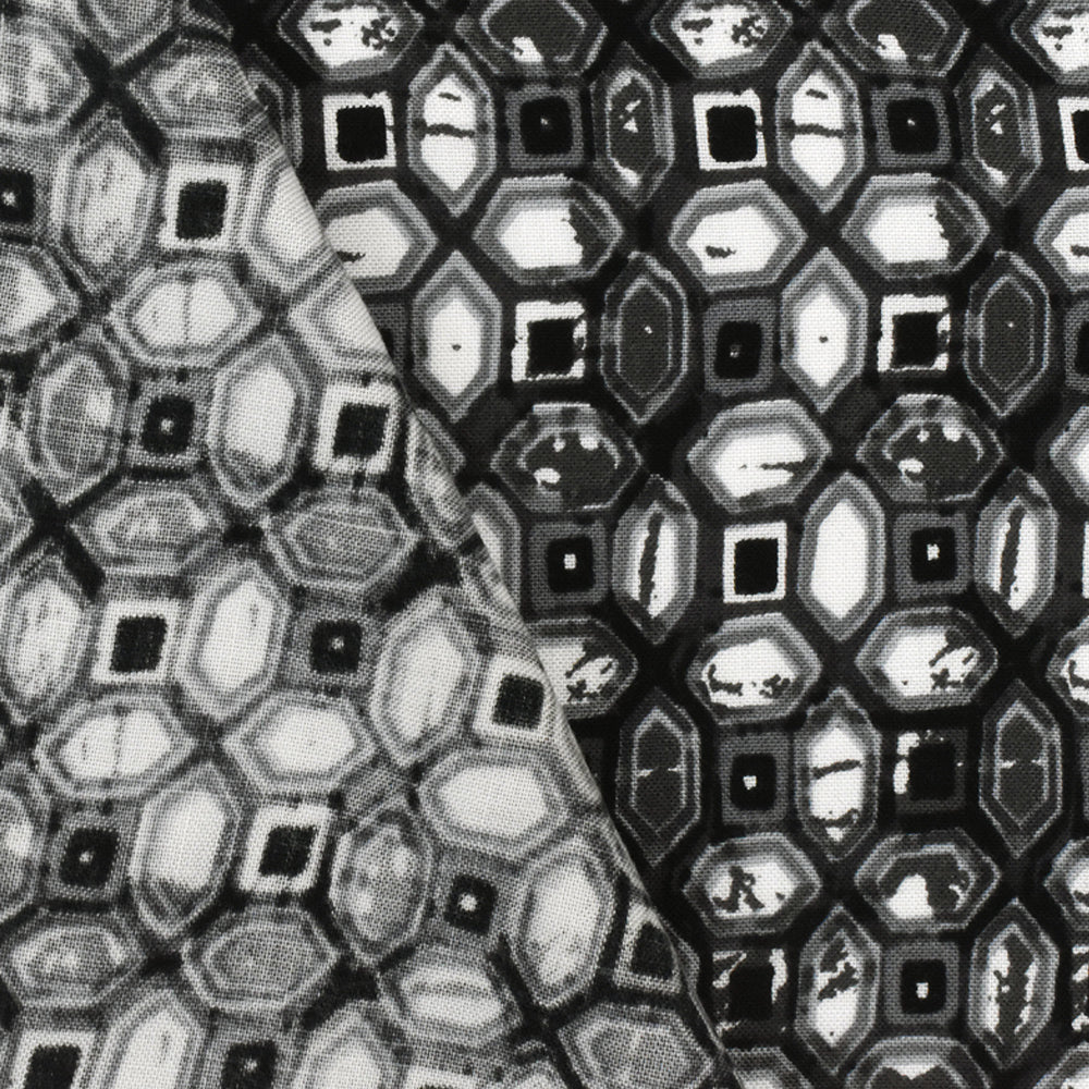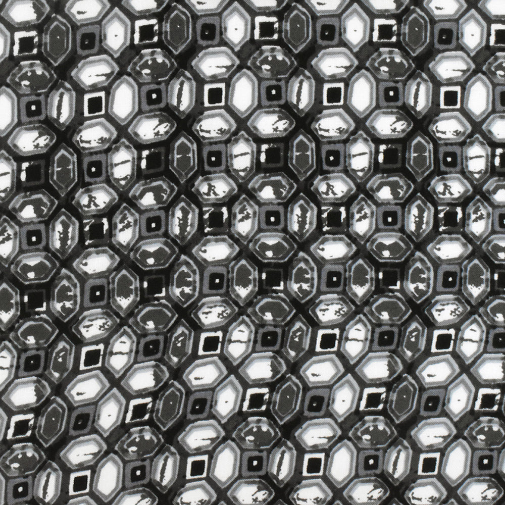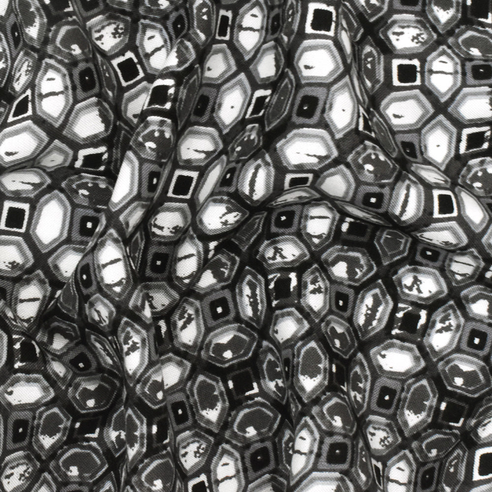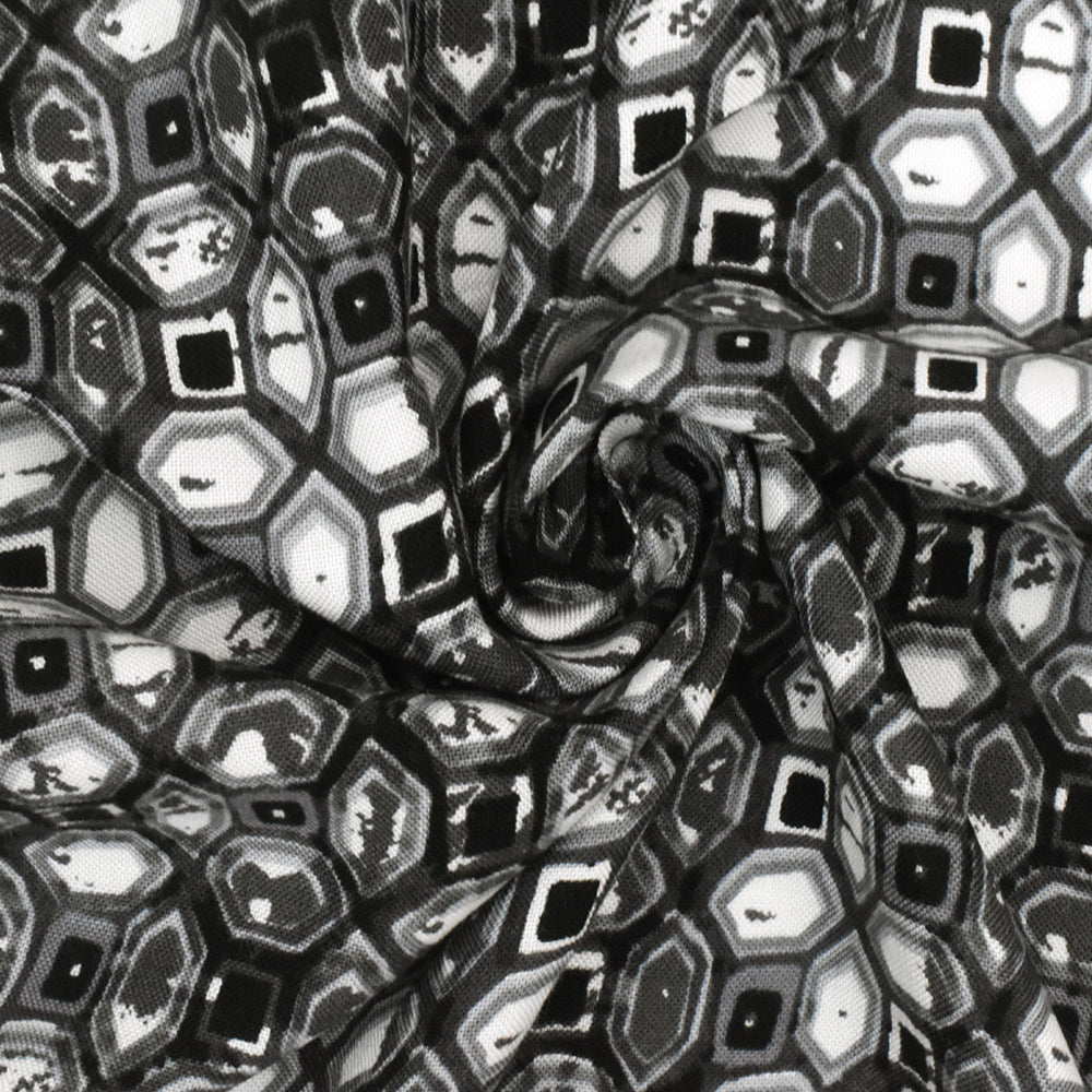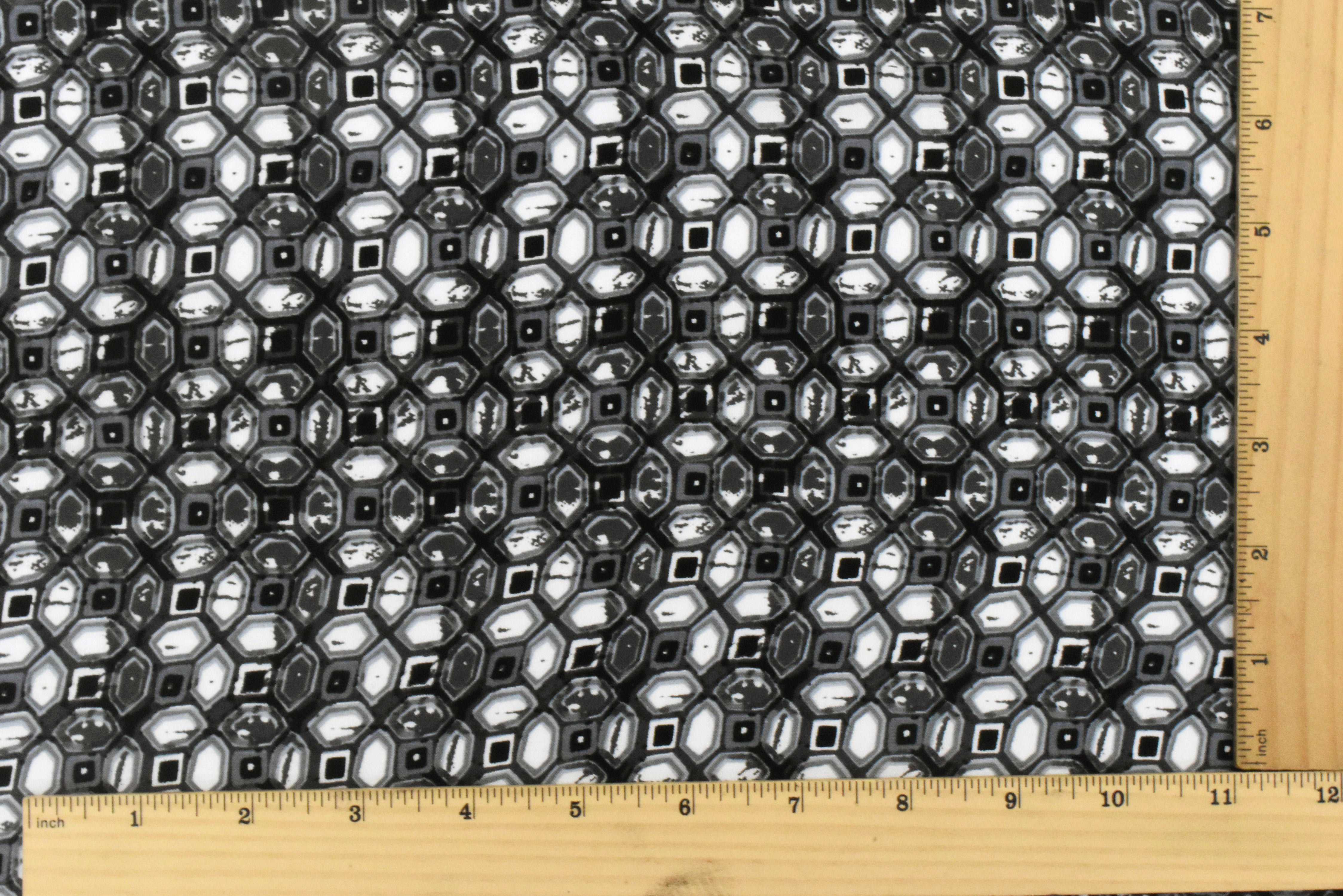 Black-Gray-White Abstract Tile Printed Rayon Challis Fabric