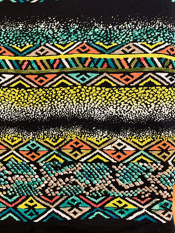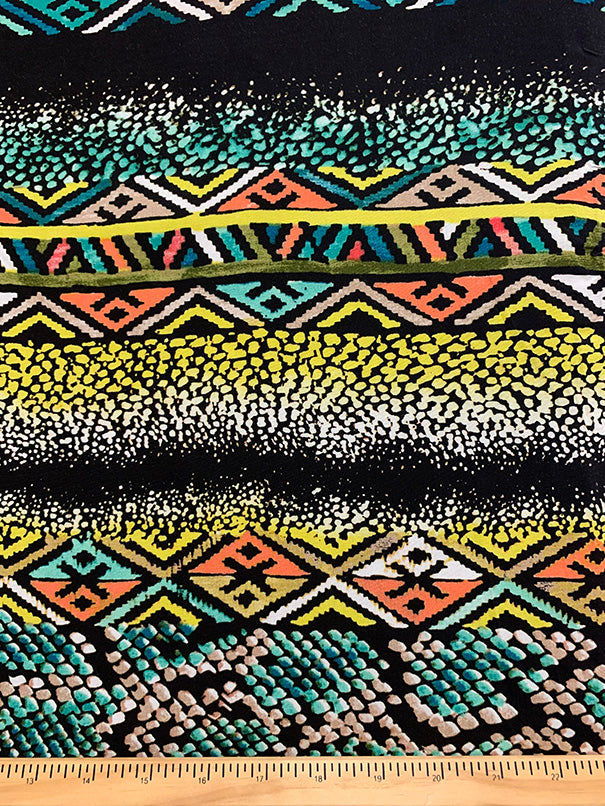 Black Multi Splatter Stripe Print Rayon Challis Fabric