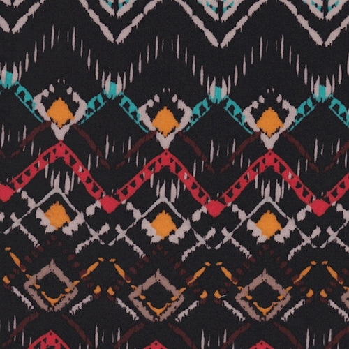Black/Orange Multi Southwest Chevron Rayon Challis Fabric