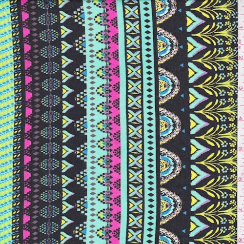 Black/Seafoam/Pink Deco Stripe Rayon Challis Fabric