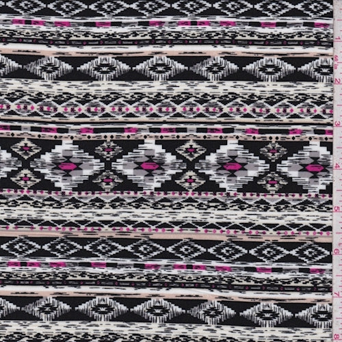 Black/White/Beige Diamond Aztec Stripe Challis Fabric